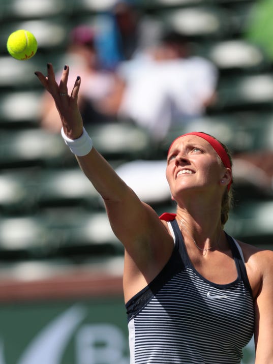 Kvitova was one of a handful of top-ranked women's players to advance on Tuesday. The Czech tennis star will face third-seeded Agnieszka Radwanzka of Poland on Stadium Court at 12:30 p.m. Radwanska defeated 2010 BNP Paribas Open champion and 2015 runner-up Jelena Jankovic, 6-3, 6-3, on Stadium Court on Tuesday.